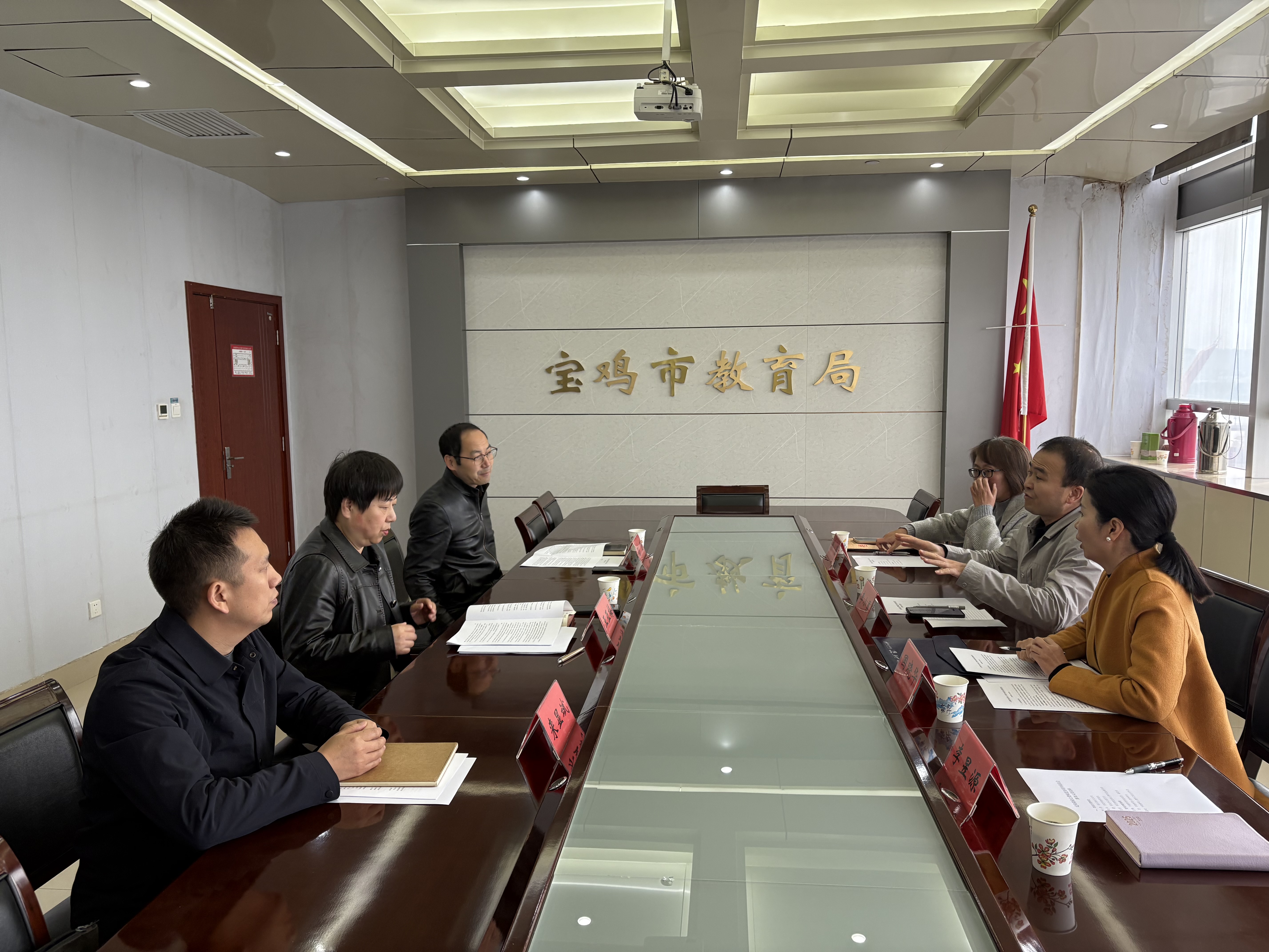 10月31日上午,我校招生就业处处长李小勇、师范学院教学副院长国晓华一行赴宝鸡市教育局,就公费师范生培养工作进行专题汇报,宝鸡市教育局副局长王亚梅,人教科科长孙朋,人教科三级主任科员来显斌出席座谈会。