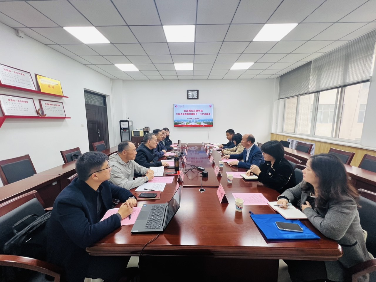 10月29日,外国语学院院长韩红建、副院长熊国芳、张东霞及系部主任一行6人赴西安石油大学外国语学院开展调研交流。西安石油大学外国语学院党委书记张建高、副院长陈武及各系部负责人接待来访。